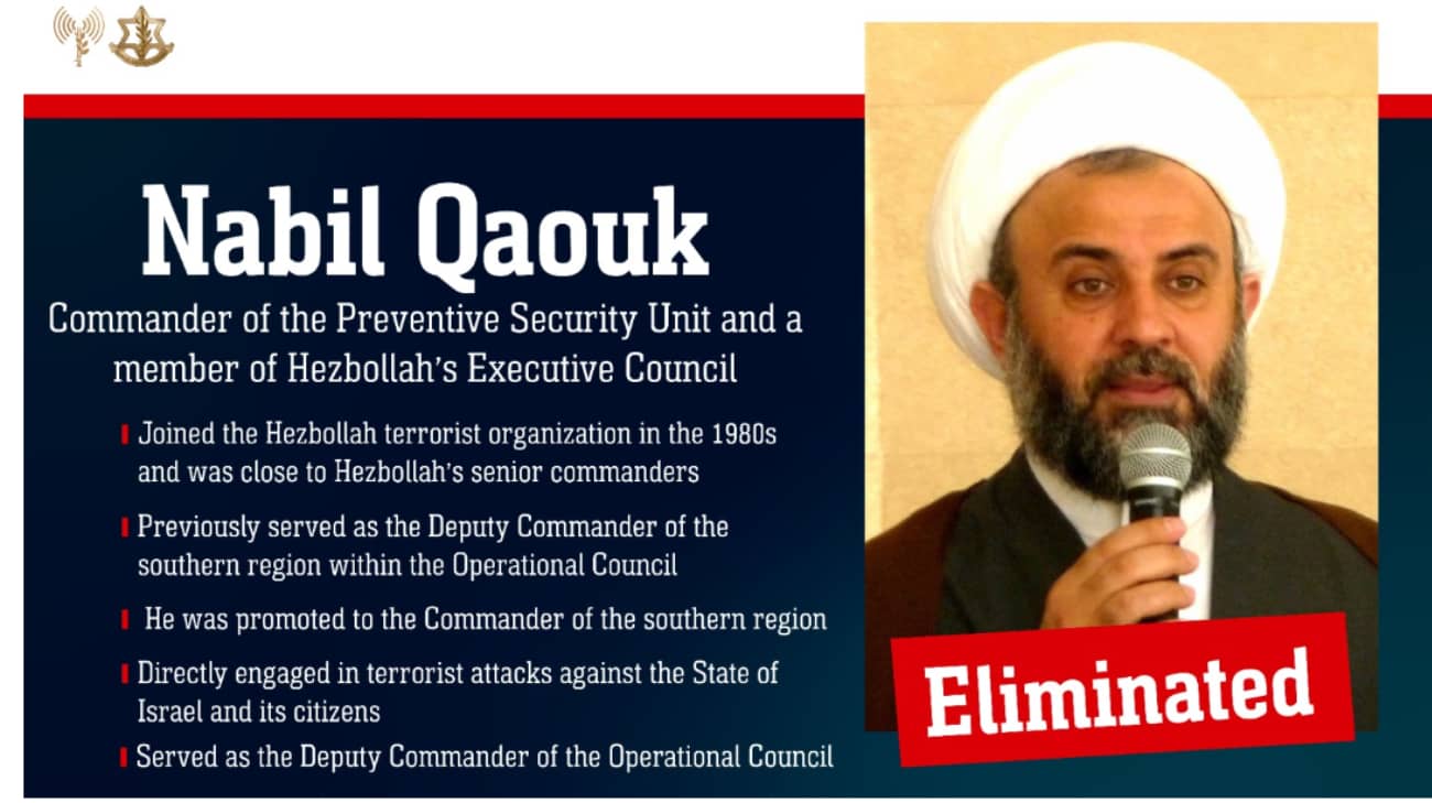 Forças de Defesa de Israel relatam assassinato de outro alto funcionário do Hezbollah