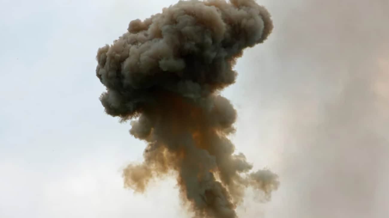 Uma explosão. Foto de stock: Getty Images Um ataque russo destruiu parcialmente o prédio de…