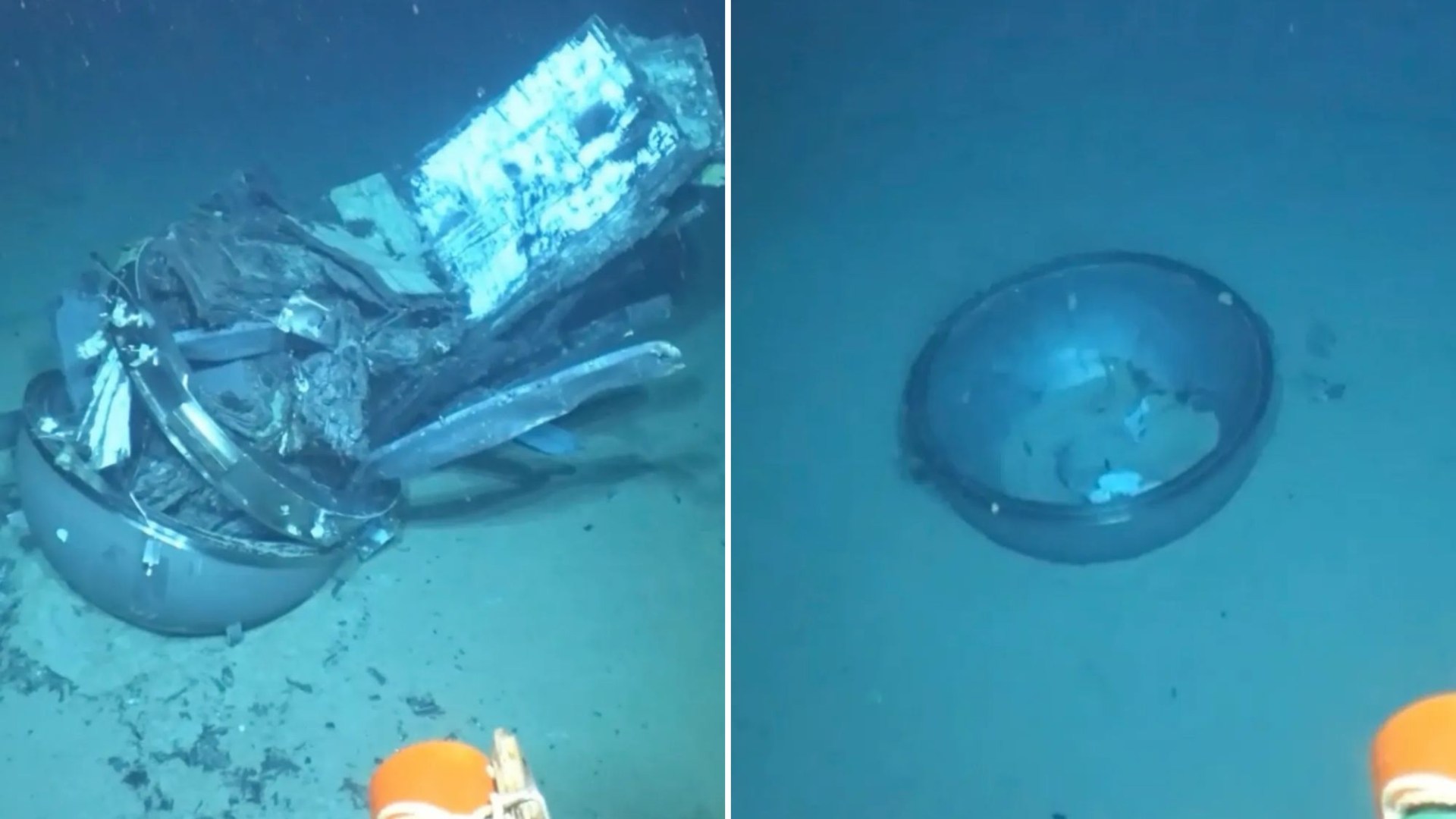 Novo vídeo arrepiante de destroços do submarino Titan espalhados pelo fundo do oceano mostra a tripulação da cúpula espiando antes da implosão