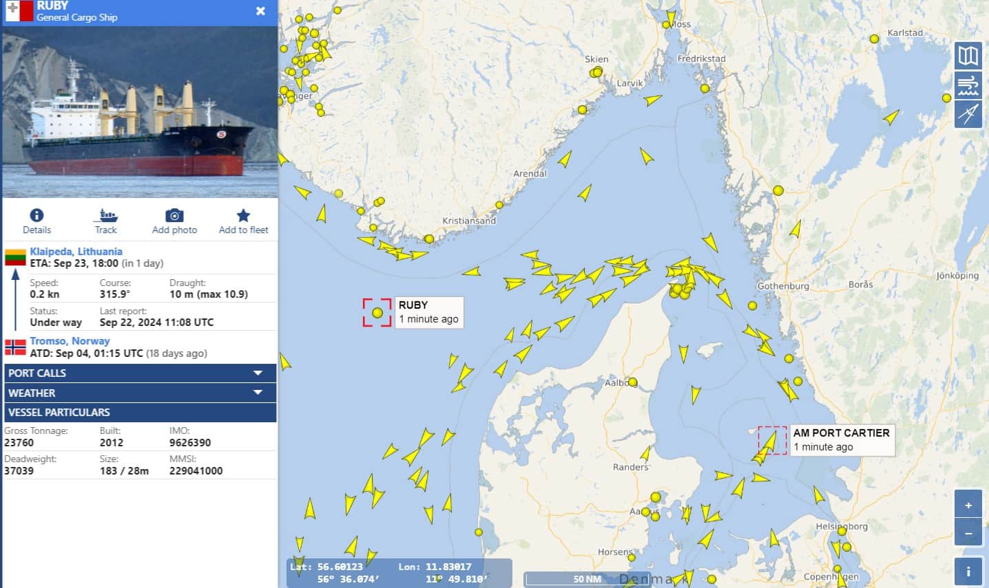 O navio de carga Ruby, que viaja com explosivos russos, deveria passar por águas dinamarquesas…